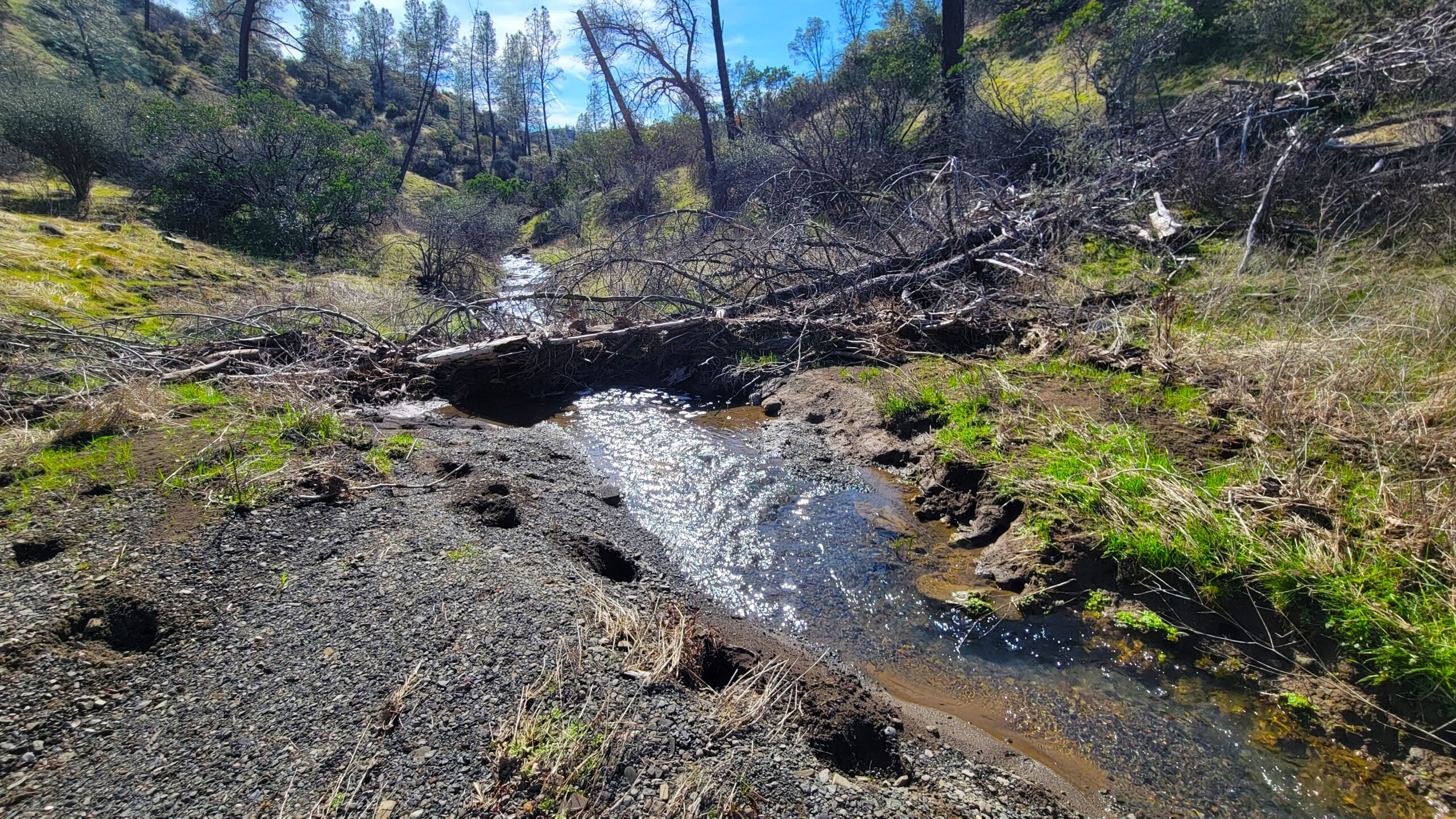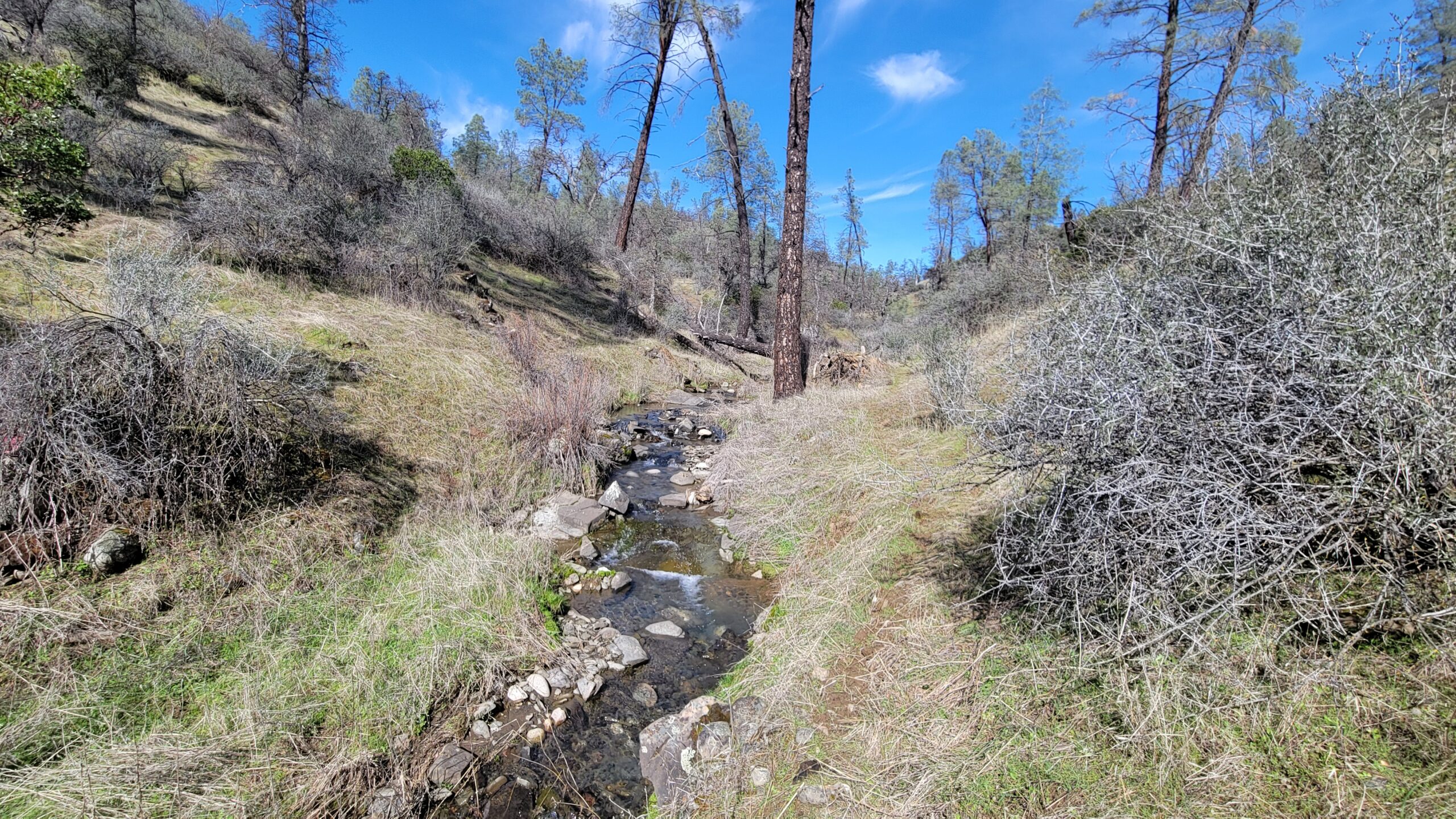 Directions: Where Hwy 273 meets Clear Creek Rd, go 22.6 miles on Clear Creek Rd. Left on Yolla Bolly dirt Rd (no sign) go 2 miles. Right on Cottonwood Creek Rd go .8 miles to pink tape and steep driveway/path on right.